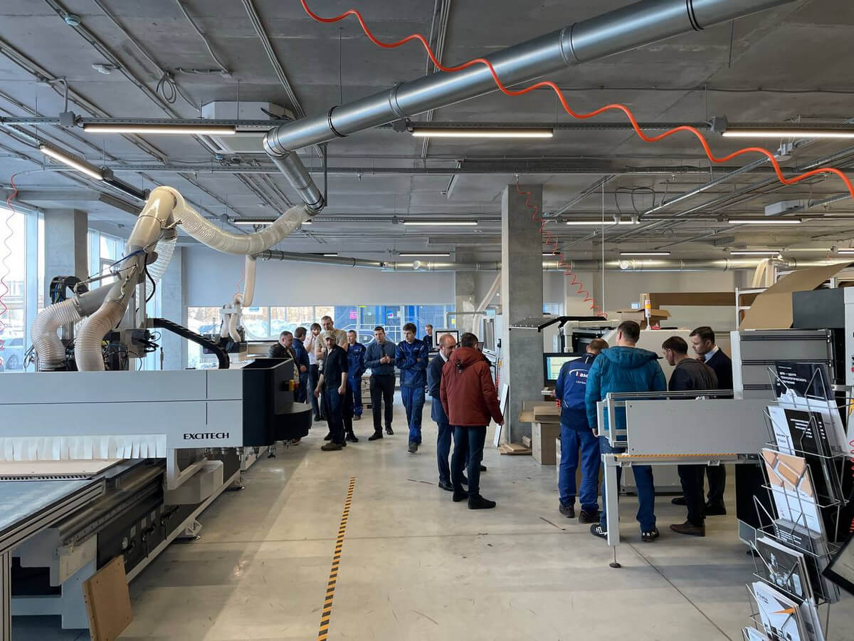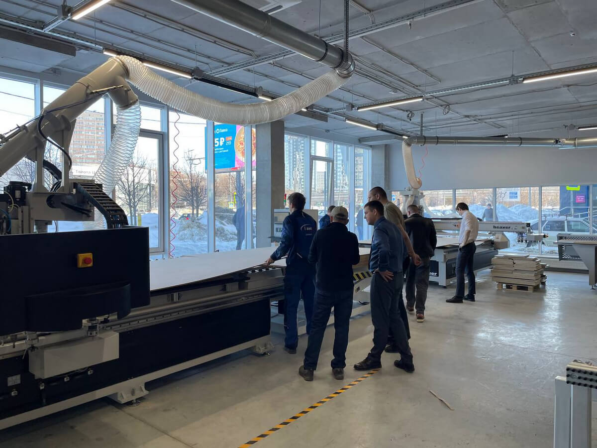 В шоу-руме можно посмотреть современные решения для производства корпусной мебели, фрезерования фасадов и HPL-пластика, которые работают с минимальным влиянием человеческого фактора на геометрию деталей, а также другое оборудование.