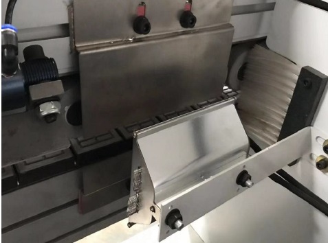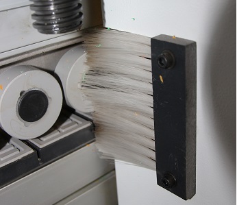 - В перегородках станка в зоне прохождения детали установлены щетки для очистки обработанной детали от пыли и частиц кромочного материала предыдущих узлов, который может попасть под копиры последующих узлов;