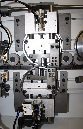 Два двигателя противоположного вращение с автоматическим подводом/отводом в зону обработки убавляются с помощью пневмоцилиндров:
