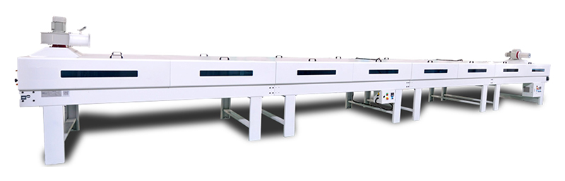 Тоннель предназначен для сушки УФ-отверждаемых лакокрасочных материалов на заготовках любого типа - погонаж, щитовые детали, дверные полотна, фасады, столешницы и прочие плоские и рельефные заготовки, а также заготовки объемного типа. Сушка производится с помощью ламп излучения в ультра-фиолетовом диапазоне.