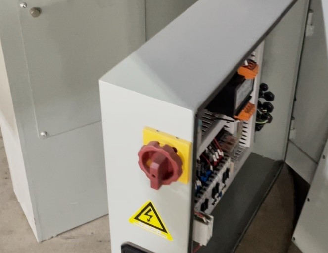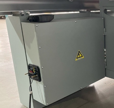 Все электрокомпоненты находятся в отдельном пылезащищенном шкафу. Высокая степень защиты двигателей от перегрузок и скачков напряжения обеспечена использование электрокомпонентов известных производителей. В соответствии с современными нормами безопасности, станок оснащен электродвигателем основной пилы с системой плавного пуска звезда – треугольник. Его применение предотвращает резкий скачок нагрузки при старте и защищает подшипники и механизмы.