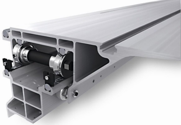 Легкость хода системы достигается за счет роликов большого размера. Каретка приводится в движение с минимальным усилием и перемещается легко как по рельсам. Каретка выполнена из качественного многокамерного алюминиевого профиля. Практика и основные производители показывают, что данный тип каретки наиболее надежен, долговечен и практически не требует технического обслуживания.