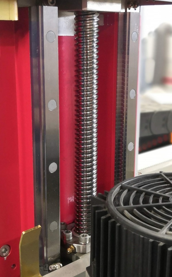 Позволяет обеспечить необходимую смазку направляющих по осям перемещения X, Y, Z, при этом количество смазочного материала четко дозировано и расходуется в минимальном количестве. Данная картриджная система позволяет значительно снизить время на обслуживание станка и риск повреждения направляющих за счет недостаточного или избыточного количества смазочного материала. Самосмазывающиеся подшипники THK способны работать до 5000 км без обслуживания. Превосходная защита от пыли, особенно в производстве мебели и деревообработке.