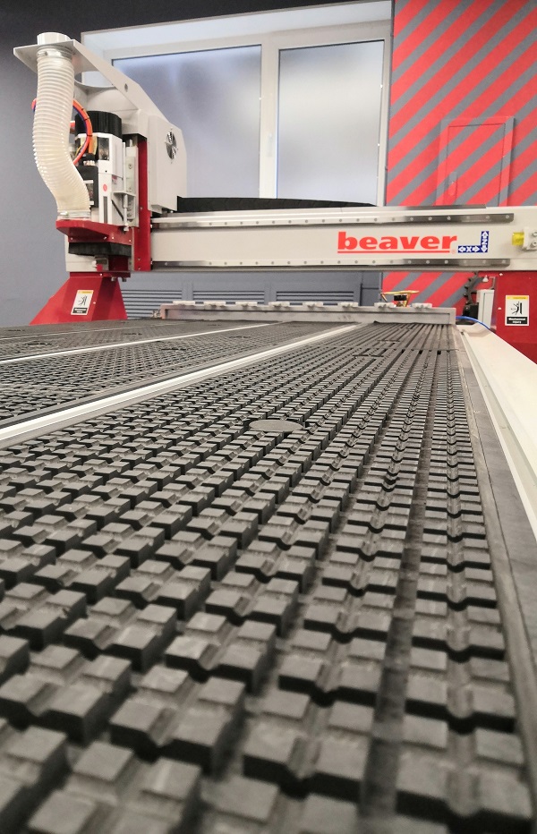 Рабочий стол станка представляет собой синтез вакуумного стола и алюминиевого стола с «Т» - пазами. Такая конструкция дает максимальную гибкость и широчайшие возможности при выборе способа фиксации заготовки. Вакуумный стол разбит на четыре зоны для удобства фиксации заготовок различных габаритов. Все модели станков Beaver с возможностью вакуумного крепления заготовок имеют специальную конструкцию стола, который позволяет крепить заготовку, как при помощи вакуума, так и при помощи механических зажимов. Это позволяет отключить вакуумный насос и экономить электроэнергию в случае обработки не требующей частой смены заготовок или обгонки по периметру заготовки. Вакуумный стол изготавливается из цельного листового материала, в котором фрезеруются пазы под алюминиевый профиль для крепления механических зажимов (струбцин). В данной конструкции отсутствуют какие-либо переклейки, что гарантирует стабильность работы вакуумного стола на протяжении всего срока службы оборудования.