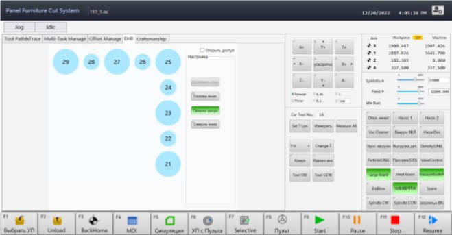 - Сервисная кнопка ручной смены инструмента;