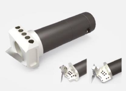 Данный узел позволяет производить прямой и криволинейный раскрой материалов различной сложности. Поворот ножа управляется сервоприводом. Узел интегрирован на портале и работает на высоких скоростях. Для определения координатной сетки используется цифровая камер, оснащенная подсветкой. Это позволяет быстро настроить шаблоны и добиться точных резов.