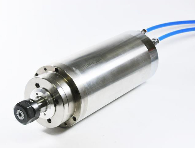 Конструкция данного шпинделя создана таким образом, чтобы тепло, выделяемое при его работе, отводилось посредством жидкостного теплоносителя. В качестве охлаждающей жидкости может быть вода или другие жидкости (антифриз, тосол) Частота вращения (24 000 об/мин) и мощность (4,5 кВт) дает возможность осуществлять обработку деталей из древесины, фанеры, а также ДСП, МДФ, пластика, акрилового стекла и других материалов. Замена инструмента в шпинделе осуществляется вручную при помощи специального ключа.