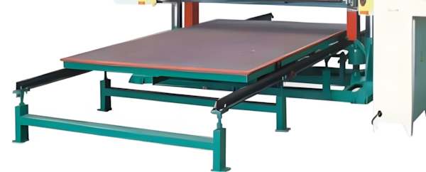 Предназначен для нарезания плоских листовых изделий заданной толщины из прямоугольных блоков поролона высокой плотности за одну установку.