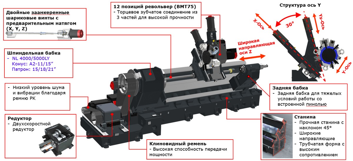 - Компактная жесткая цельнолитая станина с углом наклона 45°