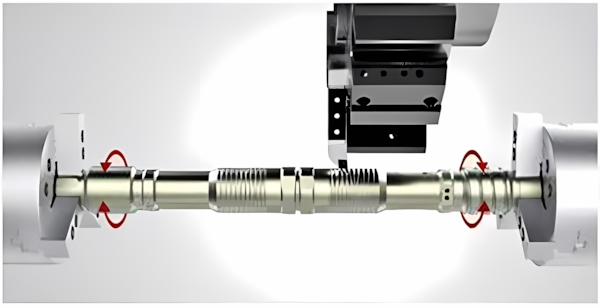 Перемещениями программируемой задней бабки управляют с помощью стойки ЧПУ для простоты установки и позиционирования. Сокращает время наладки и позволяет обрабатывать длинные детали в центрах.