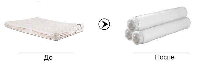 Сжатый и вакуумированый матрас накручивается на вал вместе с пленкой, принимая окончательный вид упаковки – рулон.