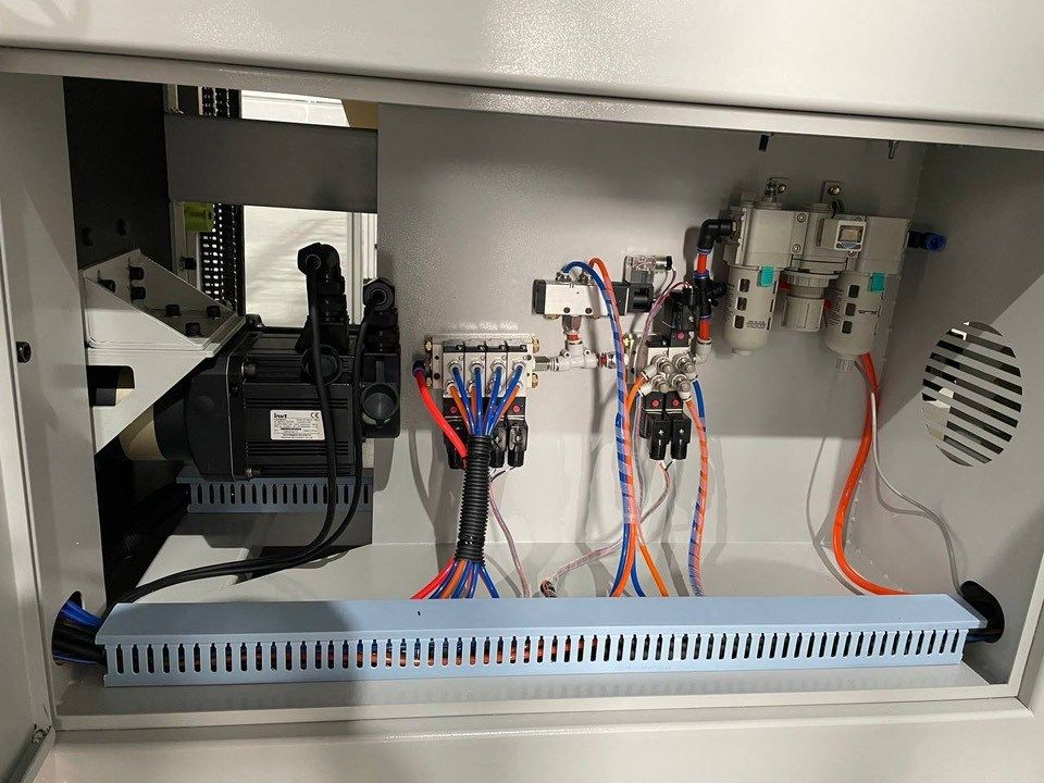 Важную роль в быстрой и бесперебойной работе станка играет качественная и высокоэффективная пневматическая система, поэтому завод - изготовитель очень серьёзно подошёл к данному вопросу установив на ответственных элементах компоненты от ведущего мирового лидера в данной области Тайваньской компании AIRTAC. Конечно же производитель не обошёл вниманием и подготовку воздуха, установив на ходе в станок многоступенчатый узел подготовки.