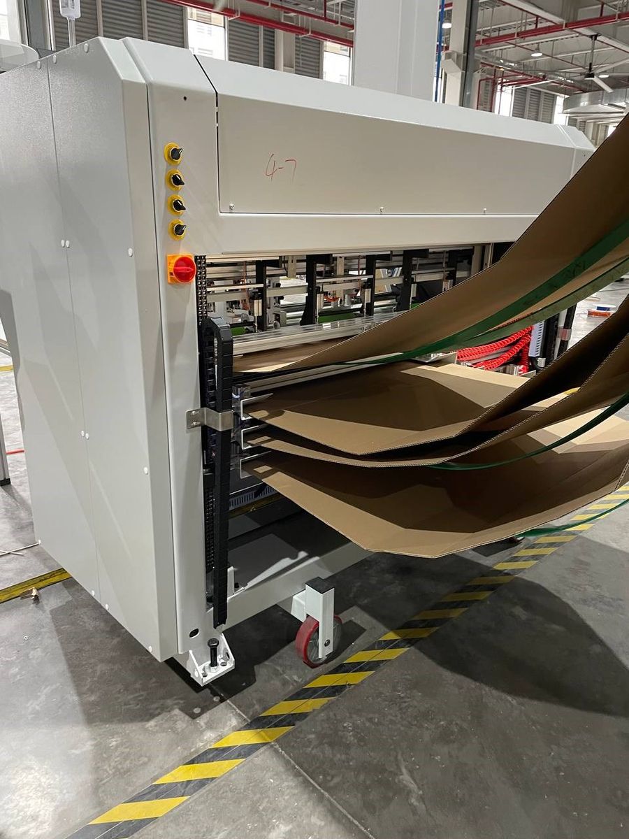 Для обеспечения максимального полезного выхода продукции при раскрое, оборудование в базовой комплектации оснащено двумя магазинами для подачи Z-картона.Применяется на производствах, где требуется упаковка производимой продукции в картонные коробки различных габаритных размеров, в особенности актуально там, где необходима повышенная гибкость и производительность.