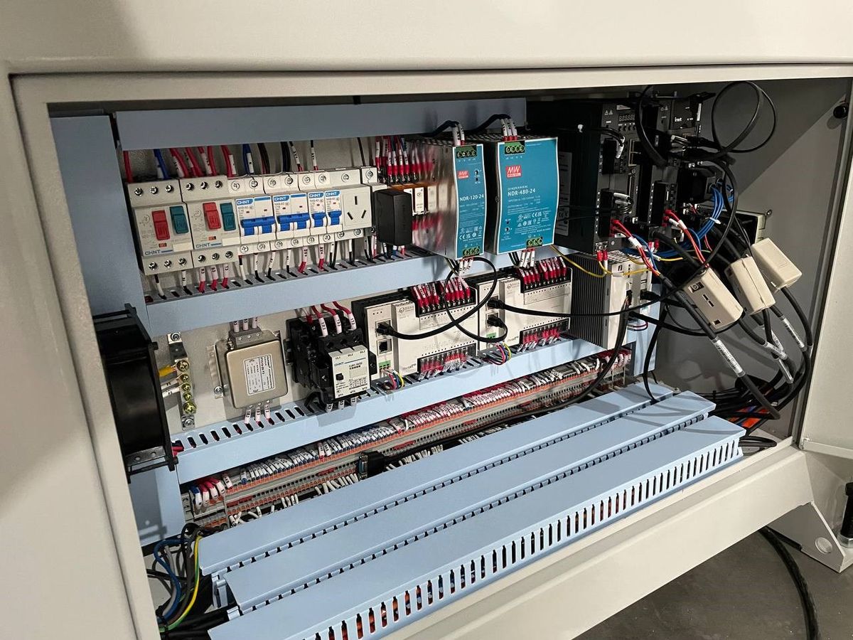 Шкаф управления - самый основной элемент станка и от его оснащённости и защищённости зависит дальнейшая стабильная работа станка. Электрошкаф Beaver PACKMATIC оснащен комплектующими проверенных и надёжных производителей, скомпонован в отдельный блок размещённый в нижней части станка. Все компоненты и соединения расположены на строго отведенных местах и имеют хороший отвод тепла и легкий доступ для контроля и обслуживания.