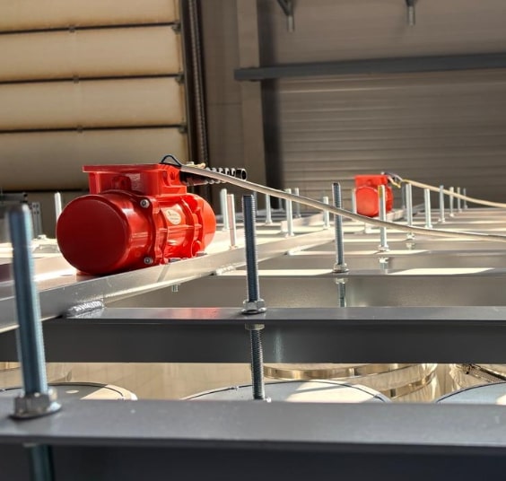 Очистка фильтров происходит в автоматическом режиме в промежутках между работой основного вентилятора. Тип регенерации – вибровстряхивание. В процессе эксплуатации фильтры вытягиваются и из-за этого теряют эффективность и способность регенерации. Чтобы фильтровальный материал оставался эффективным аспирации имеет систему натяжки фильтровальных рукавов.